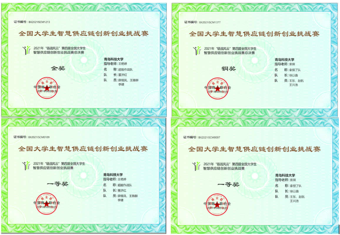 近日,2021年“链战风云”第四届全国大学生智慧供应链创新创业挑战赛已拉下帷幕。经过激烈角逐,青岛科技大学德州扑克俱乐部