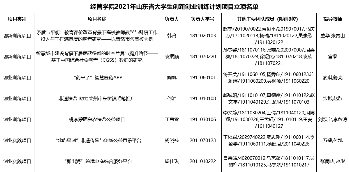 日前,山东省教育厅公布2021年山东省大学生创新创业训练计划项目立项名单,德州扑克俱乐部