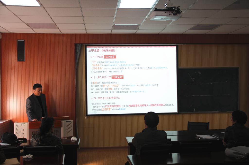 雷仲敏教授、姜真教授、许建平教授还针对公报中直接影响人民生活的“单独”生育二胎政策、退休年龄、社会养老服务体系等十项新政进行了补充解读,与会教职工就此进行了热烈讨论。杜裕禄在会上总结指出,学习三中全会精神是当前全党的重要政治任务,希望广大党员干部和教职工认真学习领会全会精神,同时务必坚持将学习全会精神与党的群众路线教育实践活动结合起来,推进党的群众路线教育实践活动深入开展。