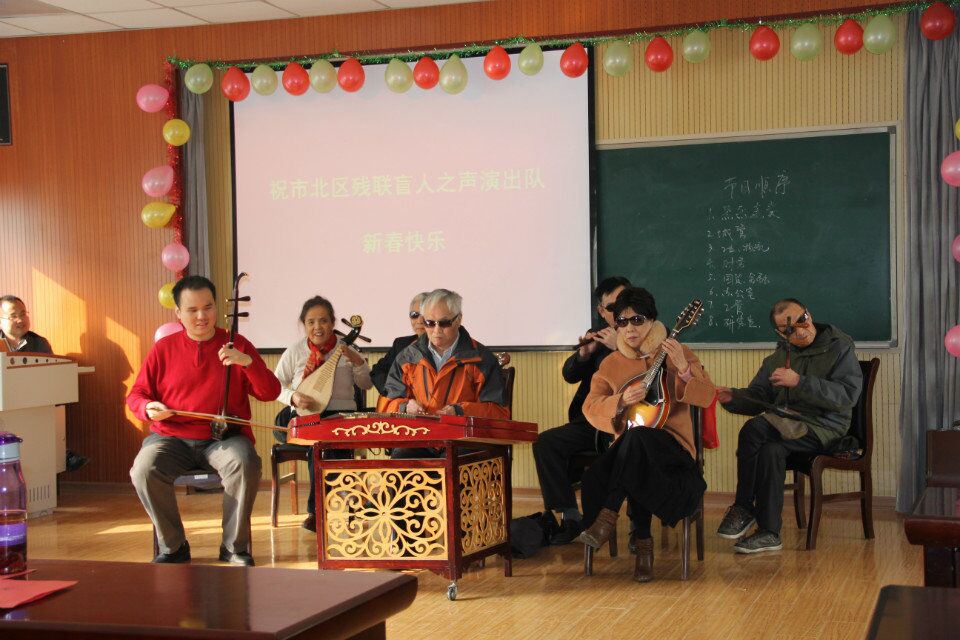 2015年迎新联欢会,市北区残联盲人之声俱乐部的演出队为德州扑克俱乐部
