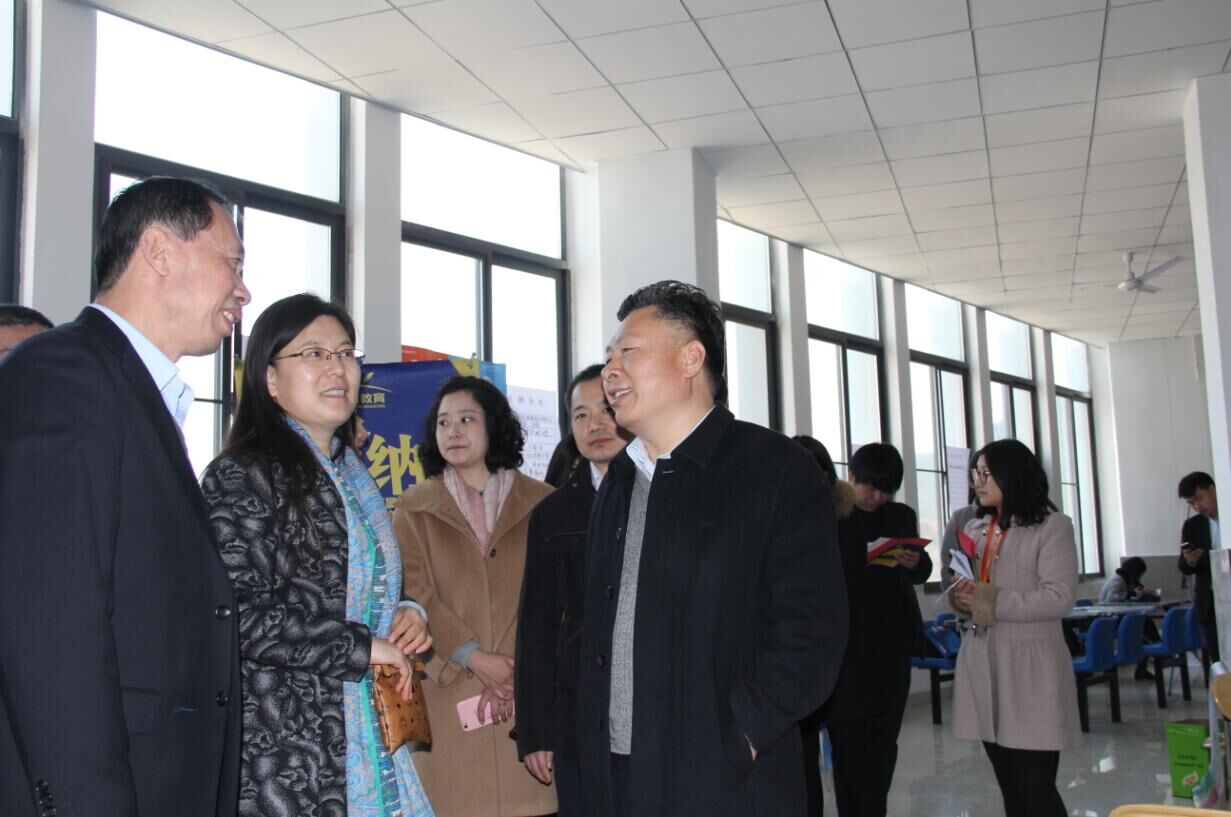 领导亲临招聘会现场,了解用人单位岗位设置及毕业生应聘情况。