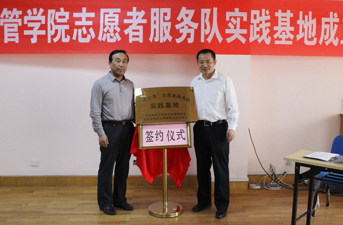 党总支副书记兼副院长张同雷致辞,激励学生充分发挥科大学子的橡胶品格,以实际行动弘扬青年志愿精神,为社会公益事业发展做出应有的贡献。最后,双方签署协议并为青年志愿者服务基地揭牌。据悉,暖心愿志愿服务团队自签约之日起每周一次向青岛市残疾人康复职业培训中心提供志愿服务,寒、暑假期,特殊节假日以及特殊情况除外。