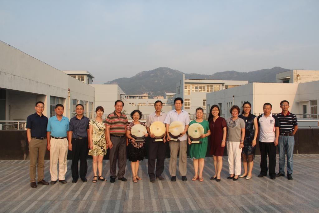 向退休教师们赠送了纪念品,并合影留念