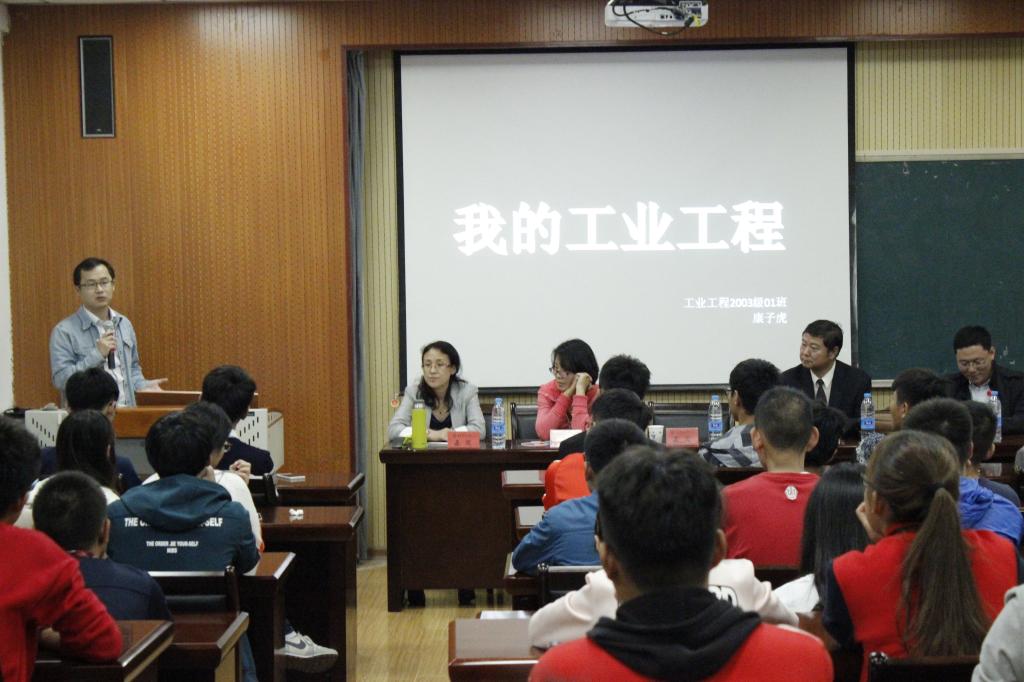 会议伊始,孙在东教授向在座新生们隆重介绍了三位杰出校友,分析了工业工程专业综合性强、技术与管理相结合的特点,并希望同学们以校友为榜样,刻苦求知,全面发展。赵慧娟主任向同学们介绍了工业工程系九位老师,并就本科生导师制进行了详细解释。03级优秀校友代表徐熙然、康子虎、崔家亮向同学们分享了个人工作经历,就工厂、生产工艺、产品创新等方面传授了相关经验,同时贴心嘱咐同学们多学习、多锻炼、多交友,珍惜大学时光。会末,工业工程系各位学长也就同学们关心的就业、考研等问题进行一一解答。