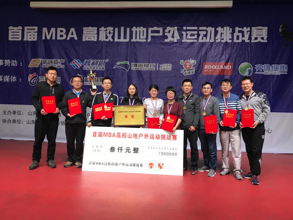 10月13-15日,山东省首届MBA 高校山地户外运动挑战赛在济南山青青少年实践教育基地举行。经过不懈努力,我校MBA团队取得团体第三名的优异成绩,团队成员获得比赛“优秀运动员奖”。