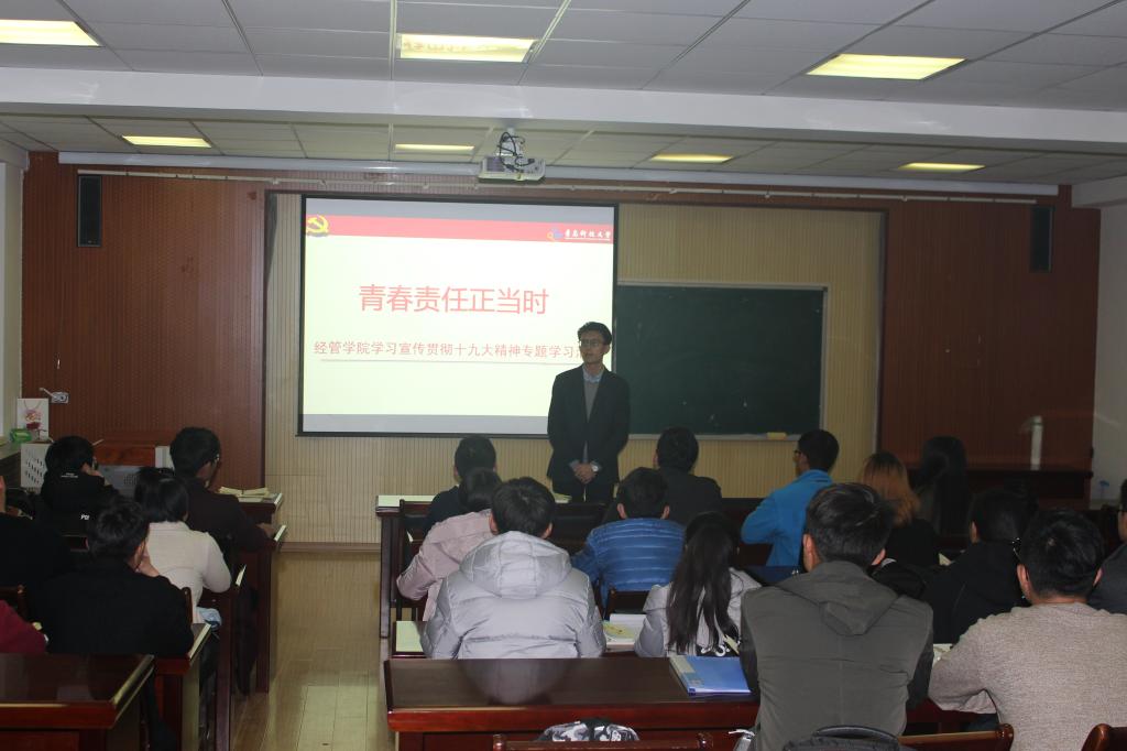 2017年取得的优异成绩,并对新生入校以来参与的活动进行了总结,希望学生干部能够各尽其责,继续做好带头作用。随后,张显全对课堂日常纪律和宿舍文化建设进行了要求。希望各班班长、团支书以身作则,时刻谨记责任,坚持团结协作,努力调整心态,不断带领班级同学努力前进。接着,王景雯带领大家就早操宿舍卫生养成教育、请假销假管理办法、纪律处分管理规定等进行了认真学习。最后,张显全与班委会、团支部成员围绕班级学风建设、班级管理、养成教育等多方面进行了探讨和交流,他认真听取了同学们的发言,对同学们提出的问题进行了详细解答。
