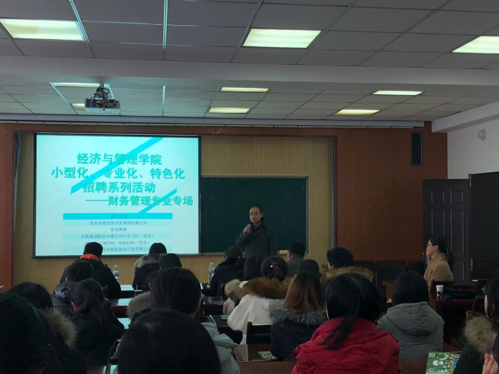 小型化、专业化、特色化招聘系列活动——财务管理专业专场在德扑楼419室成功举办,青岛啤酒山东大区财务总监王国清\青岛市政空间开发集团有限公司子公司财务总监李翠艳、东软集团股份有限公司山东大区财务总监高雪松、JSPACE LIMITED HONGKONG(青岛)财务总监薛红梅、青岛百年渡家族办公室有限公司行政经理孟丽君代表企业前来招聘。德州扑克俱乐部