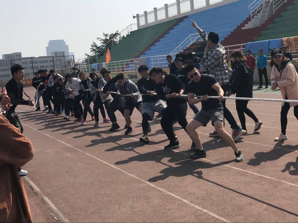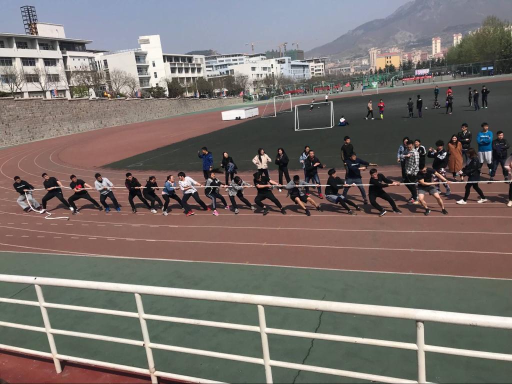 之间的交流,丰富同学们的课余生活,4月17日下午,青岛科技大学在崂山校区南苑体育场举行了一场别开生面的拔河比赛。