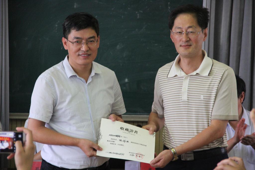 2011级校友捐赠地球仪,李德成教授为他颁发收藏证书,李德成指出感谢校友们的慷慨助学,德州扑克俱乐部