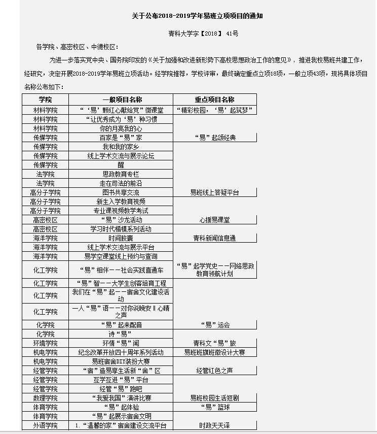 报送的项目“宿”造易享生活新“舍”区、互学互进“易”平台、德扑“易”跑吧获批一般立项,项目德扑红色之声获批重点立项,取得3个一般立项,1个重点立项的好成绩。
