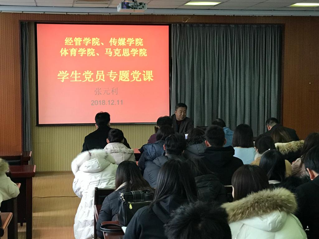 419会议室,学校党委副书记张元利以“改革开放四十年”为题讲授专题党课,德州扑克俱乐部
