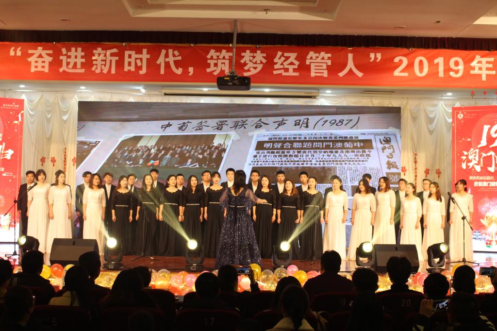 分团委全体辅导员老师和迴澜青韵合唱团用一首无伴奏混声合唱《七子之歌》庆祝澳门回归19周年,唱出了祖国悠悠百年的沧桑巨变,唱出了华夏儿女的赤子之心;