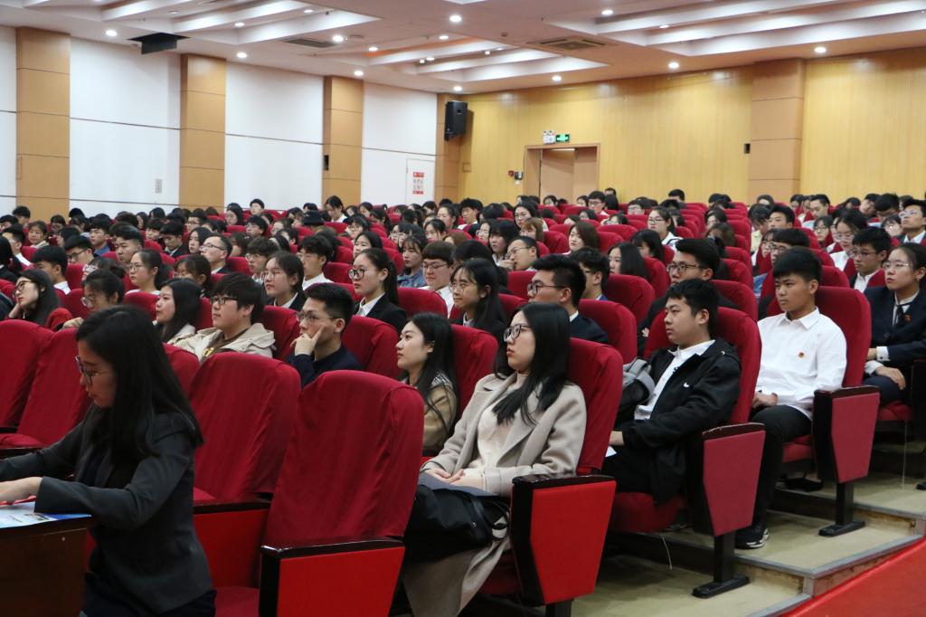 随后校团委副书记杨小明为培训班做了“勇做时代的弄潮儿”的培训。杨书记以中美贸易战为切入点,分析了中国发展面临的国内外局势,阐述了中国的崛起之路,并引导学生们从做身边的小事做起,从学好专业知识做起,从爱国做起,厚植爱国情怀,铭记共和国是红色的。杨书记用生动的语言、鲜活的案例,为全体学生骨干带来了一场精彩的授课。