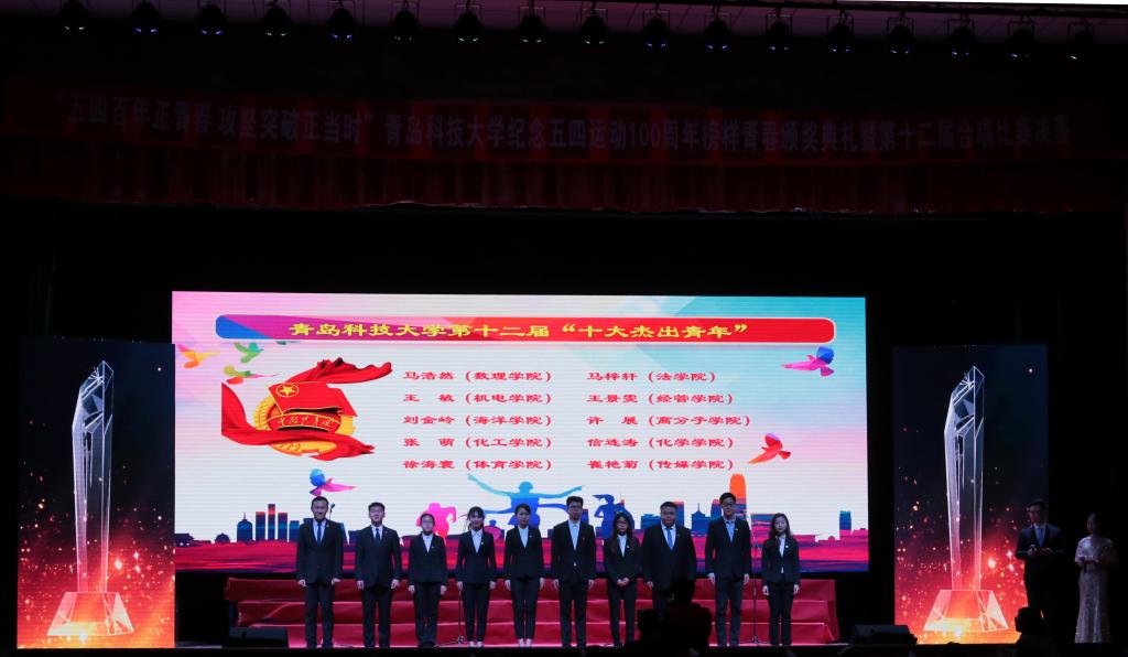 为庆祝中华人民共和国成立70周年、五四运动100周年,传承五四精神,绽放青春力量,4月26日晚,“五四百年正青春,攻坚突破正当时”青岛科技大学纪念五四运动100周年榜样青春颁奖典礼暨第十二届合唱比赛决赛于四方校区西礼堂成功举行。