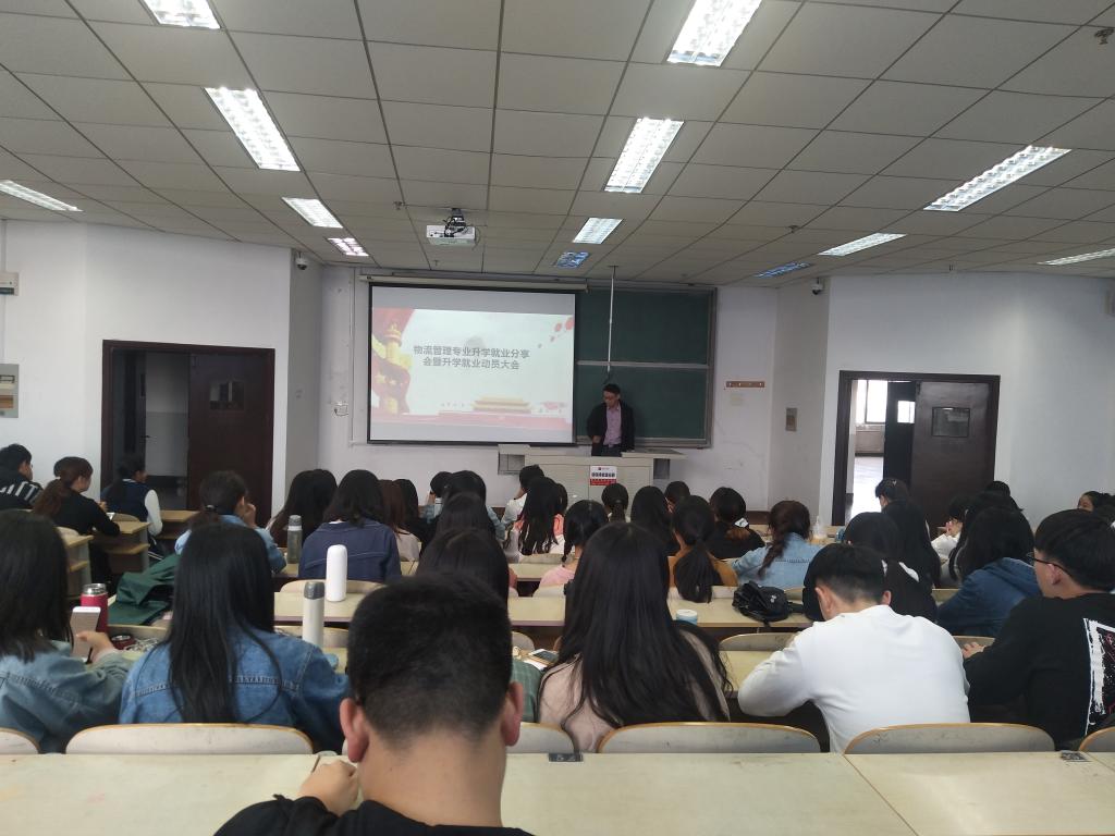 物流管理专业考研就业分享会于明德楼412顺利举行。本次大会由物流管理系吴成锋老师和索琪老师组织并主持,全体16、17级物流管理专业学生参加了本次分享会。