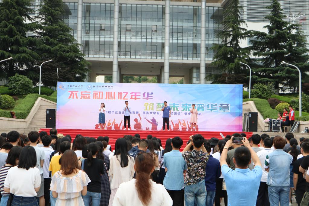 党政领导、各专业教师代表及全体毕业生500余人参加了此次活动。开幕式伊始,党总支书记李德成致辞,他对于2019届毕业生四年以来的成长给予了肯定,希望毕业生们在工作岗位上能够铭记初心,传承和弘扬科大家风,艰苦奋斗,做“有理想、有本领、有担当”的新时代青年,并嘱咐毕业生,母校永远是大家的精神家园,要常回家看看。15级辅导员王辰表达了对毕业生的殷切希望和美好祝福。随后,毕业生代表宋一璇讲话,回顾了求学路上母校对自己的培养和老师们的关怀,表示无论将来走到哪里,永远都会记得自己是科大人。