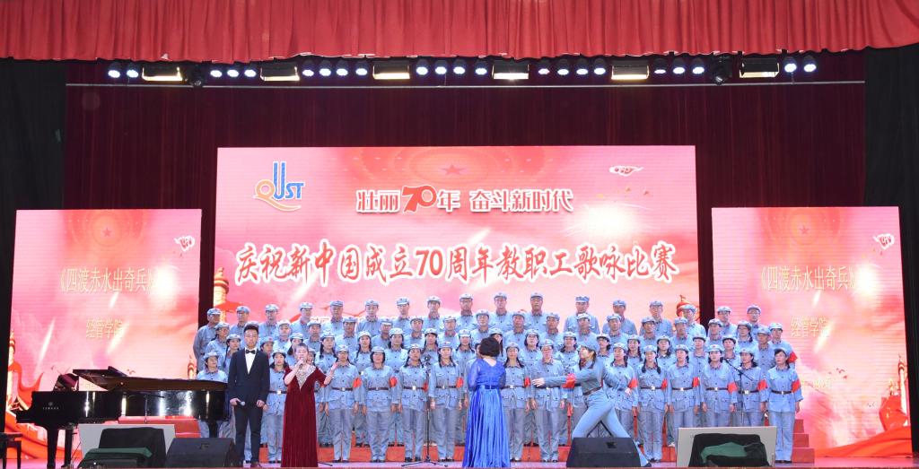 庆祝大会结束后,“壮丽70年 奋斗新时代”庆祝新中国成立70周年教职工歌咏比赛正式开始,经过7月份的初赛选拔,全校共有12支代表队进入决赛。各代表队整齐着装,气宇轩昂,用高亢嘹亮的歌声向伟大祖国70华诞献礼。德州扑克俱乐部