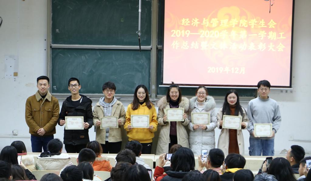 全面发展为工作中心,紧紧围绕“一心双环”工作要领,坚持“一部主导,多部联动“的活动组织模式,做学生友,不做学生官,走在时代前沿,努力将学生会建设成为能够引领学生思潮的一流学生组织。随后,各部门分管主席依次总结本学期部门工作。最后,高守朋为在本学期各项文体活动中表现突出的优秀个人颁发荣誉证书并合影留念。
