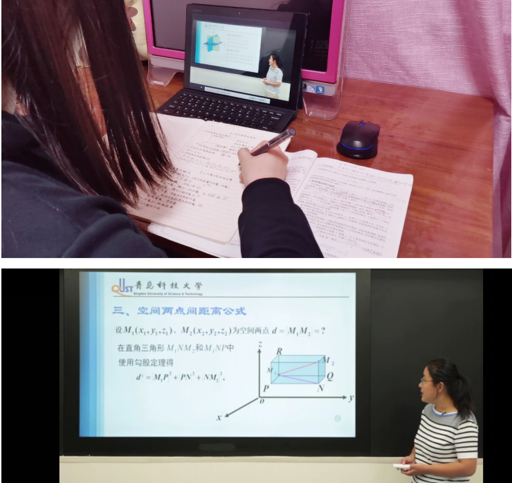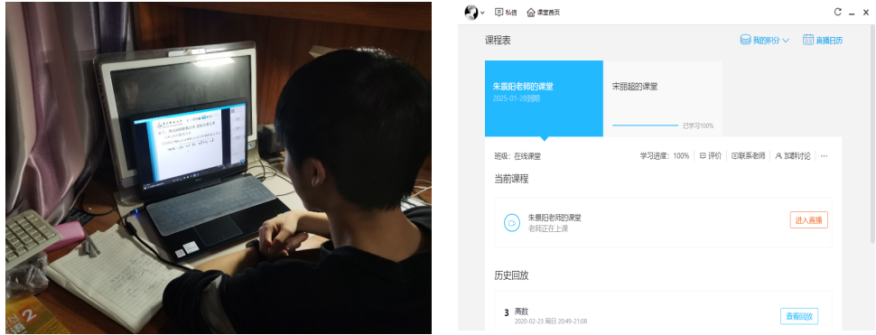 刚开始的时候,老师和同学都有一点拘束和紧张,但不一会儿都熟悉了网上授课。线上课程十分方便,不受地点约束,学生在家就能上课。线上课程能够回放,这样方便上课期间不小心跑神或没听清、没听懂的同学再度观看,查缺补漏。