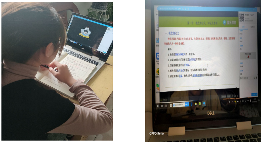 开学第一节课我们上的是《税收学》,为了防止网络卡顿,老师让我们在七点五十的时候就进行了签到。虽然以直播的形式进行上课,但是仍然能够体会到同学们学习知识的热情,同学们都会在讨论区里交流,举手回答问题,下课的时候也会用语音和老师聊天。总体来说,感觉网上听课的效果还是不错的。