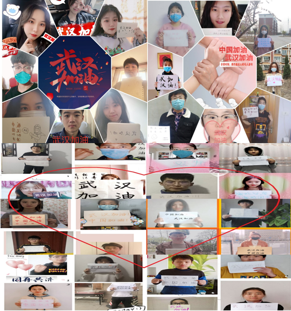 营销182班、管理181班等班级组织同学们积极上传包含对武汉人民的祝福、为前线工作人员加油、为抗疫英雄点赞等内容的照片,并将照片组合成班级照片墙,展现了积极向上、心系国家的班级风貌。