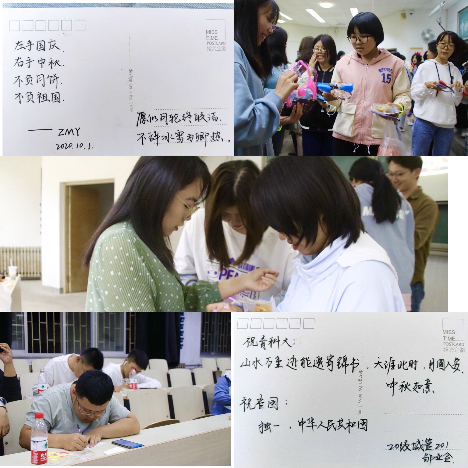 以“随风寄相思”为主题,开展明信片互递活动。“字字传递真情,句句书写真心。“最温馨的阶段莫过于手写祝福。”祖国快乐,月亮快乐,你也快乐。“”十月的好运拍了拍你。“”平安喜乐,万事胜意。“身在异乡,收到来自同学的花式祝福,让大家感受到了德扑大家庭的温暖。月圆中秋夜,共话温暖情,正如工商管理201班张嘉欣同学所说:”这是我过的第一个中秋国庆相遇的双节,恰逢我与青科的相聚,不胜欢喜。今年的中秋国庆,没有往日与亲人的欢聚,却拥有一群可爱的人——我在青科的家人们。”独特的感悟和真实的情感洋溢在每个学子的心头。