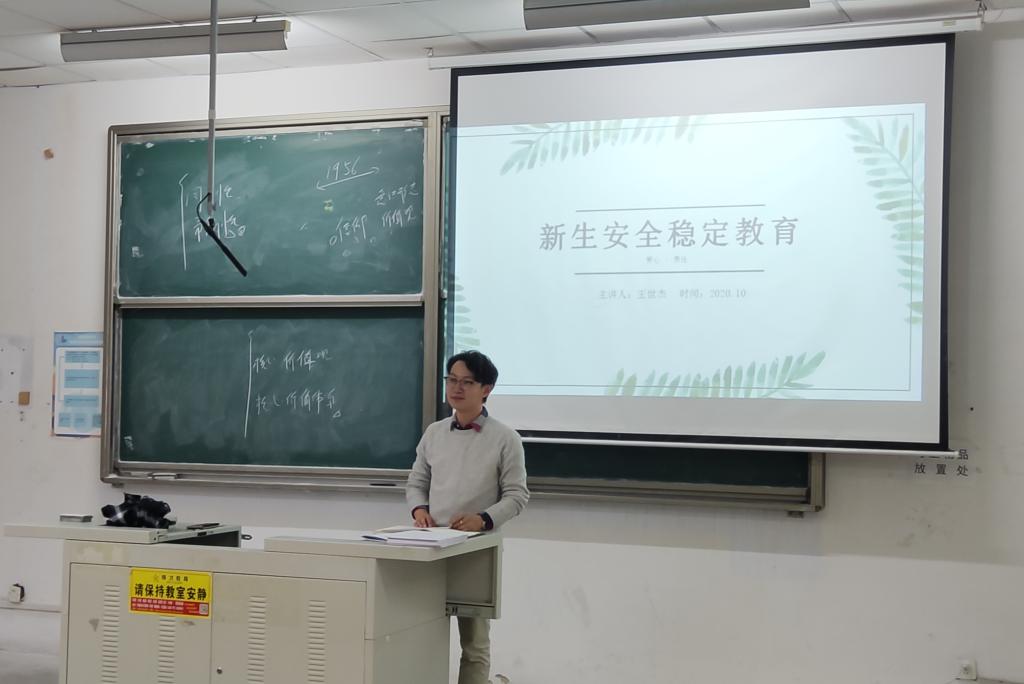 于弘毅楼E102室、E202室举行新生安全教育大会。会议由2020级辅导员付凯、王世杰主持,德州扑克俱乐部