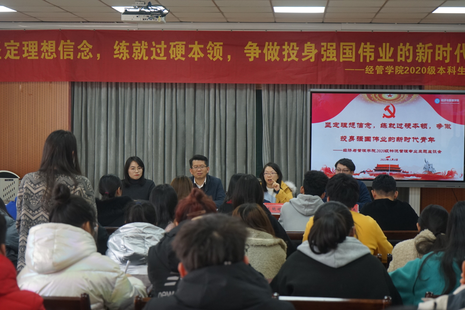 2020级物流管理专业期末交流会于德扑楼504会议室举行,党委(校长)办公室副主任步德胜出席座谈会并与同学们亲切交流。2020级物流管理专业班主任王艳婷、2020级辅导员及城市管理专业全体同学参加,座谈会由2020级辅导员付凯主持。