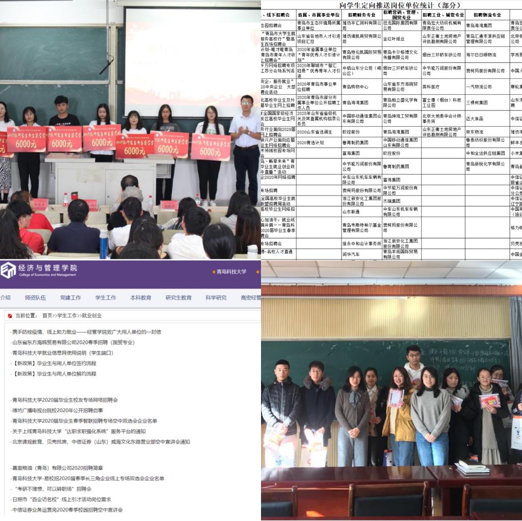 主动对接用人单位,畅通信息渠道,确保人才供需“不掉线”。延伸市场“前端”,积极请进来,学工办(团委)集中举行“职在必得 筑梦未来”线下招聘会2场,从来自全国各地近200 家用人单位中优选出50家专业契合好、薪资水平高、发展前景广的优质企业,提供就业岗位1100余个。各系通过走访对口企业、组织学生实习、联系校友企业、签订实习基地等方式全力维护就业市场,七个专业先后邀请顺丰、青岛啤酒、TATA木门、东软集团等 40 余家针对性高、专业性强、行业知名的企业开展“小型化、专业化、特色化”招聘会14场。疫情期间发布《德州扑克俱乐部