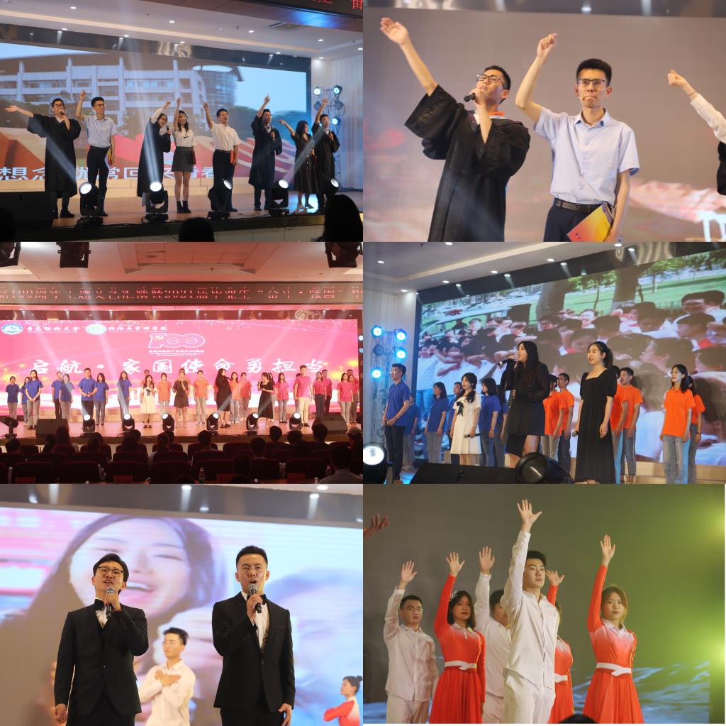 第四篇章,《启航·家国使命勇担当》,紧扣毕业生家国使命和理想信念教育,嵌入“奋斗·强国”毕业嘉年华启动仪式,通过毕业生自编自演的节目《告别青科大,青春献祖国》和音诗画《请老师们放心》,体现出毕业季浓浓的师生情和深深的难舍谊。