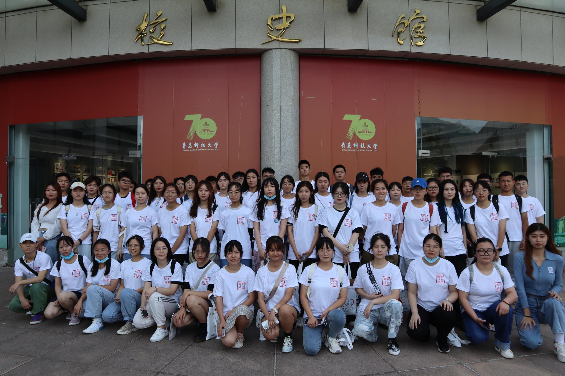 统一配发印有“强国有我”的文化衫井然有序地进入校史馆内参观。校史馆工作人员早就准备就绪,热情接待前来参观的同学,并详细认真地向同学们介绍了青岛科技大学的历史沿革和辉煌成就。同学们在校史馆讲解员的带领下,了解了每个展示单元背后蕴藏着的故事。参观完校史馆,同学们对学校的整个发展历程有了详细的了解,他们的脸上也流露出对学校的敬仰、自豪之情。
