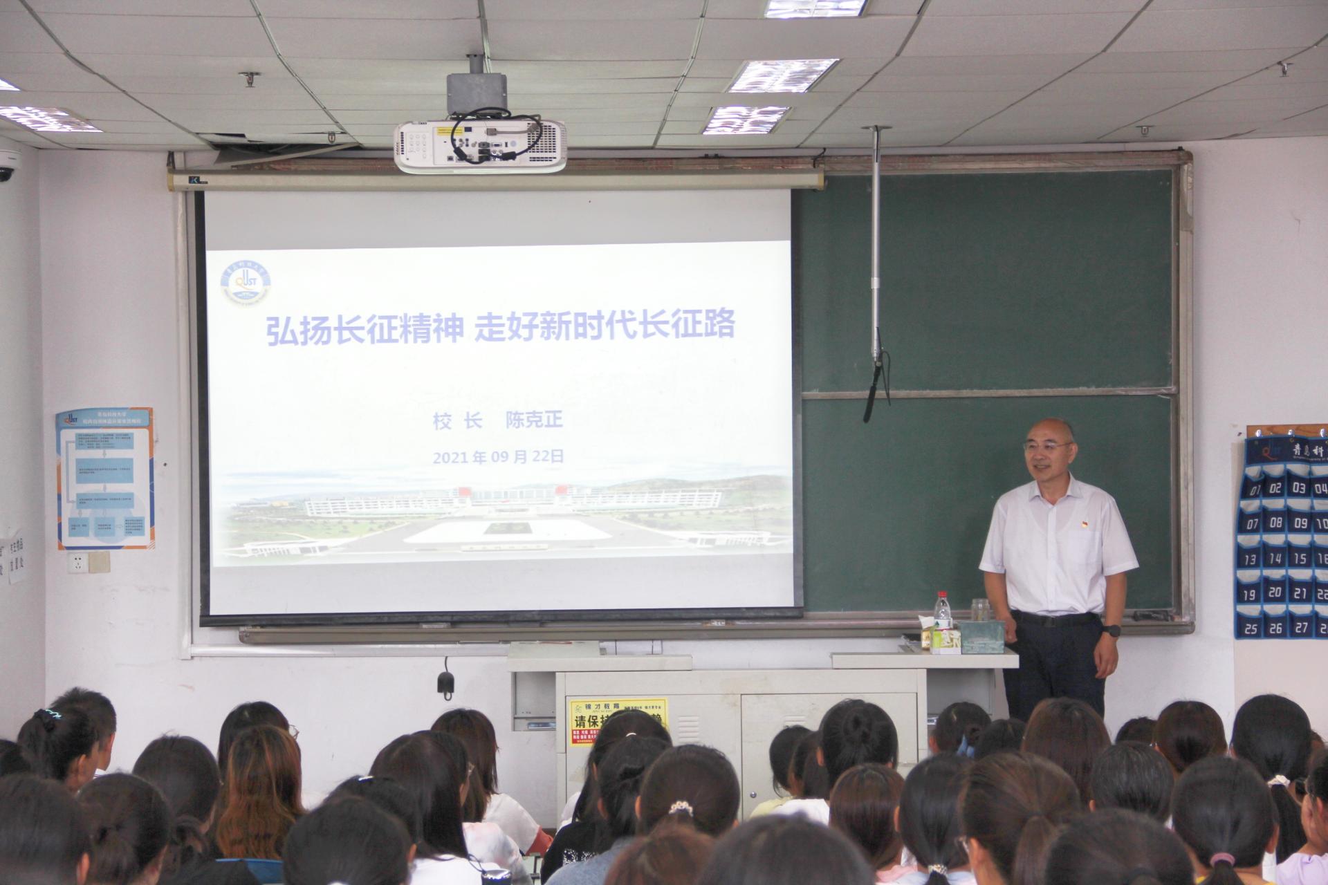 9月22日下午,校长陈克正走进学生课堂,以“弘扬长征精神 走好新时代长征路”为主题,为德州扑克俱乐部