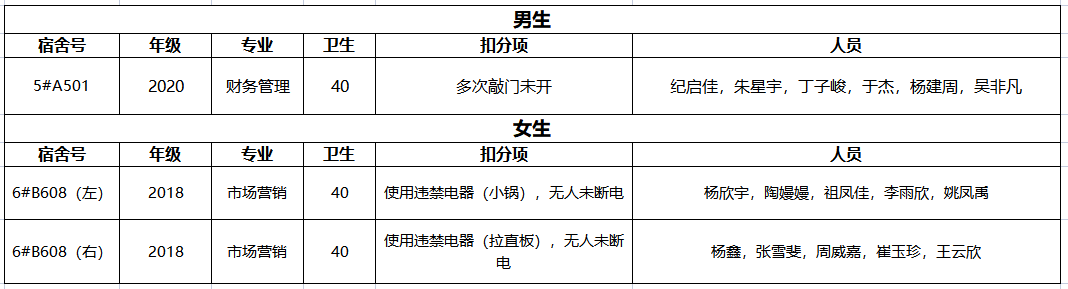 不合格宿舍如下: