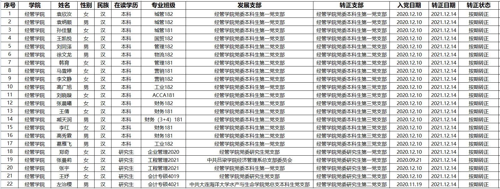 本科生党支部、研究生党支部于2021年12月14日召开预备党员转正大会讨论袁欣汝等22位同志的转正问题,同意以上同志按期转为中共正式党员,现将该22名同志情况予以公示。公示期为2021年12月14日至2021年12月21日。如有异议,请于公示期内到德州扑克俱乐部