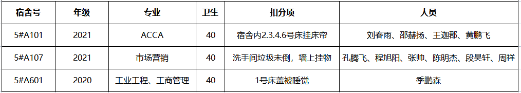 权益部于每周周二下午对全院宿舍进行常规检查,第三周检查情况如下:
