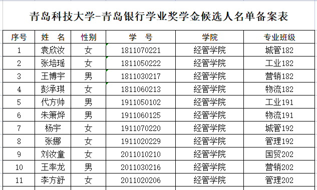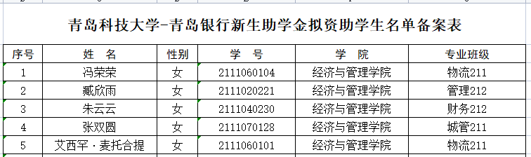 根据学校《关于评审2021年度青岛银行奖助学金的通知》的要求,经个人申请、材料审核,结合前期奖助学金获得情况,现对青岛银行奖助学金获得者予以公示,公示期3个工作日,公示时间2022年4月25日-2022年4月27日。