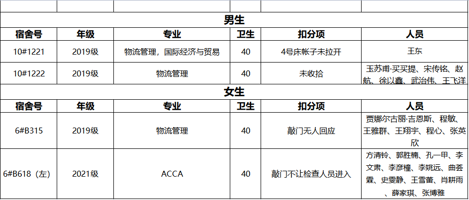 不合格宿舍如下: