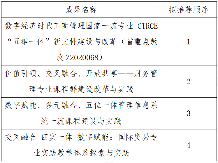 根据教务处《关于开展2024年青岛科技大学教学成果奖评选工作的通知》的相关要求,德州扑克俱乐部 开展了2024年校级本科教学成果申报推荐工作,经专家评审,现将拟推荐顺序予以公示,公示期3天,反馈电话88958952。