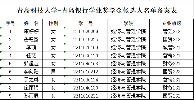 根据学校《关于评审2024年度青岛银行奖助学金的通知》的要求,经个人申请、材料审核,结合前期奖助学金获得情况,现对青岛银行奖助学金获得者予以公示,公示期3个工作日,公示时间2025年5月27日-2025年5月29日。