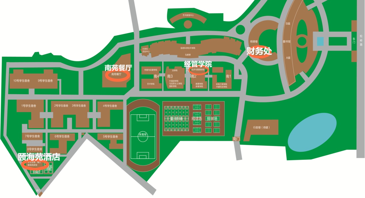 3.餐饮可到校内南苑餐厅三楼现金购买。