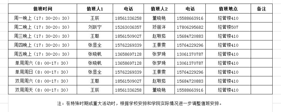 德州扑克俱乐部 2019年学生工作队伍值班安排表