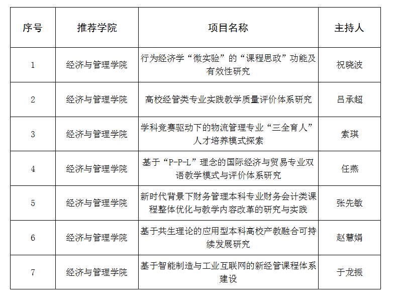 2020年青岛科技大学本科教改项目申报我院教师共申报10项,德州扑克俱乐部 申报限额为7项。德州扑克俱乐部 组织专家进行评审,根据评审成绩排序拟推荐以下7项入选,名单公示如下:
