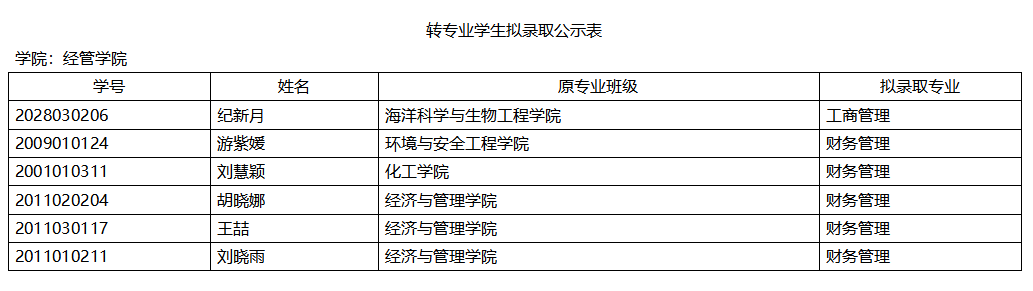 【公示】德州扑克俱乐部 2021年转专业学生拟录取公示