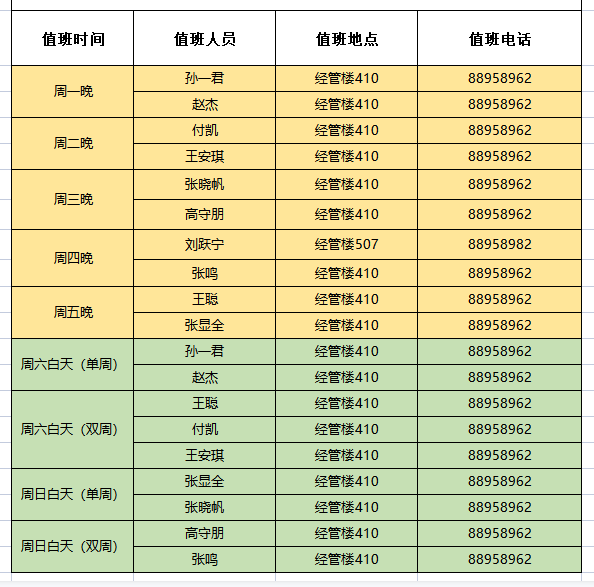 德州扑克俱乐部 学工队伍2021-2022学年第一学期常态化值班安排表