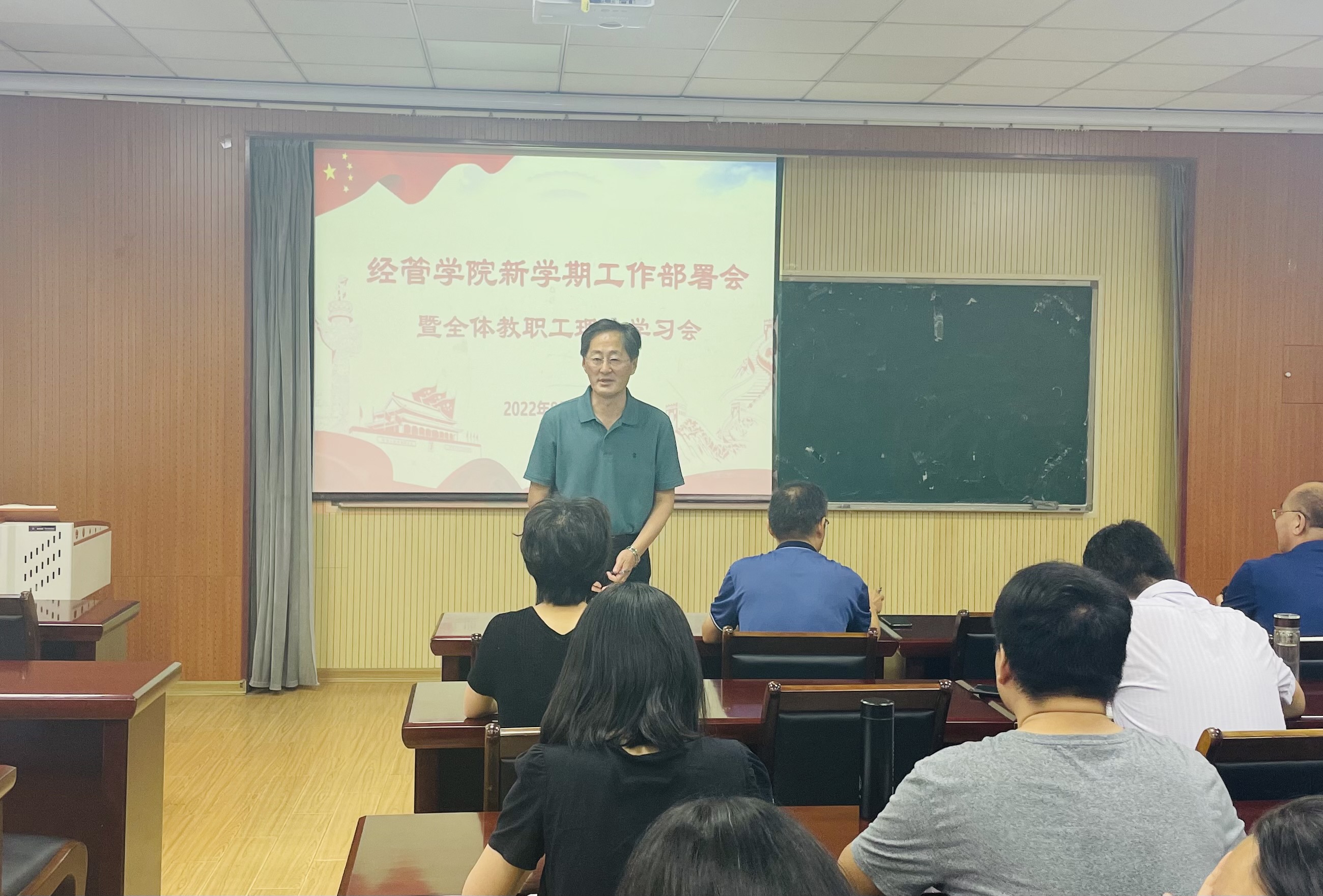教师获奖等工作,并重点强调部署下半年博士点申报、专业调整、人才强院、学校第十一次党代会建言献策、山东省MBA会议筹备等工作。李勋来指出,全体教师要高度重视意识形态与师德师风建设,始终将师德师风建设作为重要工作常抓不懈,切实提升全体教职工思想政治素质与师德水平。