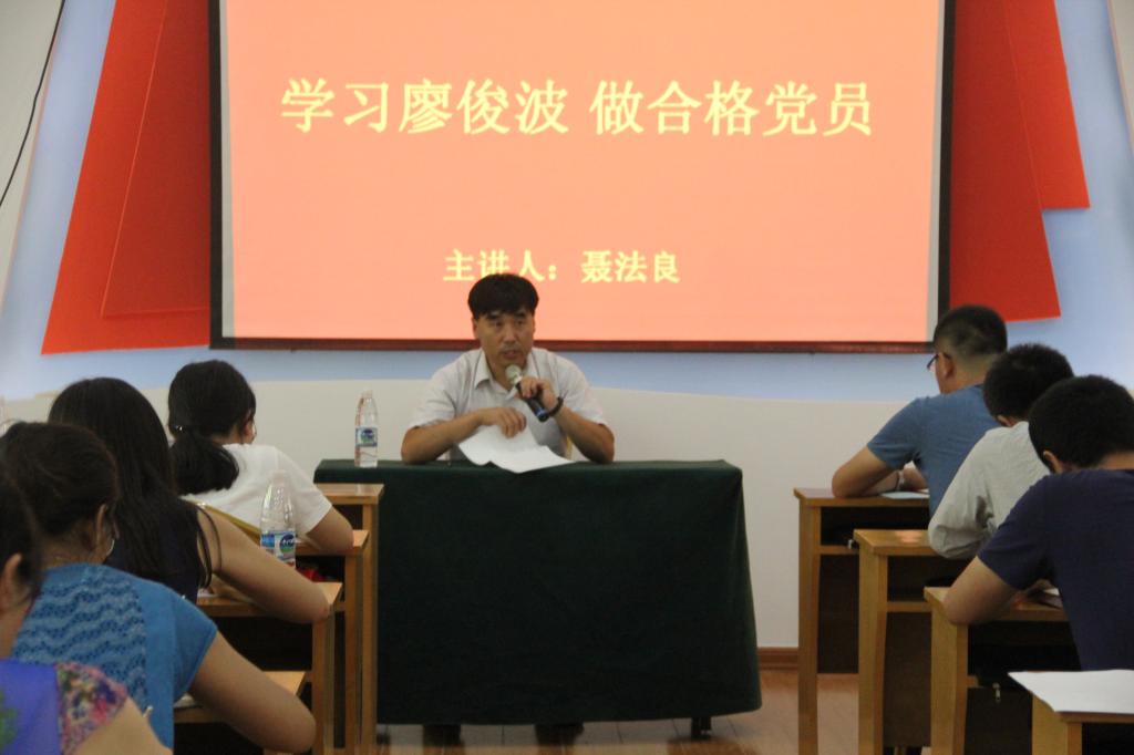 党总支书记聂法良在教育基地主讲题为《学习廖俊波做合格党员》的党课。课上,聂法良指出,廖俊波同志是一面旗帜,让全体党员干部学有榜样,行有示范;是一面镜子,让全体党员干部照出不足,照出差距,明确努力的方向;是一本党课教材,让全体党员不忘初心,继续前进。全体党员都应学习廖俊波信念坚定,对党忠诚的政治品质;学习他心系群众,造福一方的为民情怀;学习他立足岗位,真抓实干的务实作风;学习他奋发有为,锐意进取的担当精神;学习他无私奉献,克己奉公的清廉本色。他强调,全体党员务必要讲政治有信念,讲规矩有纪律,讲道德有品行,讲奉献有作为,做到“四个合格”,在推进德州扑克俱乐部