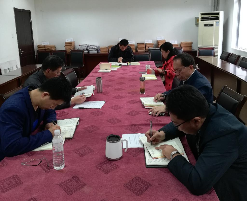 领导班子于德扑楼415召开“牢记宗旨意识,提高党性修养,高效提升工作——主题教育集中交流研讨会”,理论学习中心组全体成员参加,研讨会由党总支书记李德成主持。