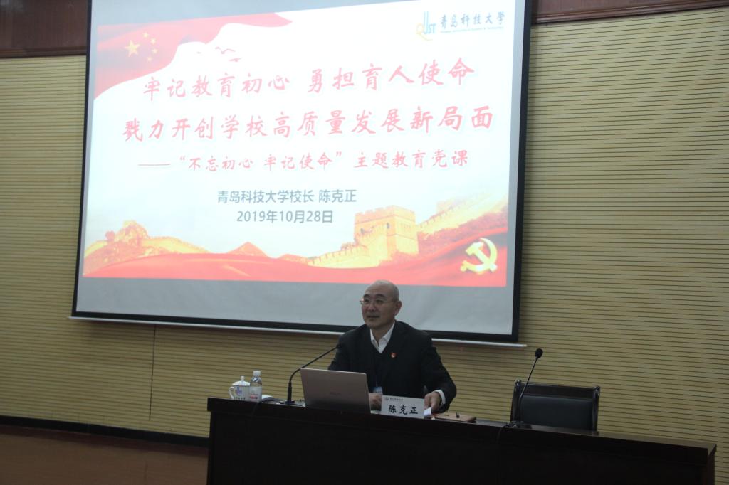 10月28日下午4点,根据学校党委“不忘初心、牢记使命”主题教育实施方案,校长陈克正主讲的“‘牢记教育初心 勇担育人使命’,戮力开创学校高质量发展新局面”主题党课在第一报告厅进行。发展规划处、科技处、人文社科处、合作发展处、高密校区、德州扑克俱乐部