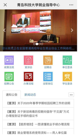 通过微信可以查看学校重要通知公告、新闻快递、招聘公告、报名参加招聘会及宣讲会等。