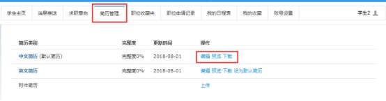 用人单位登录就业网可以查看学生的简历信息,同时,简历完善度达到80%后,即可使用一键求职功能。